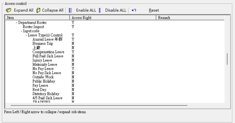In the Web > MSS > Roster module, admin users can now control which leave type(s) are allowed for users to input in the duty roster. This greatly reduces input errors. 在 Web > MSS > 更表(Roster) 模組中,系統管理員現在可以控制哪些請假類型允許使用者在更表中輸入。這大幅減少了輸入錯誤的情況。 |